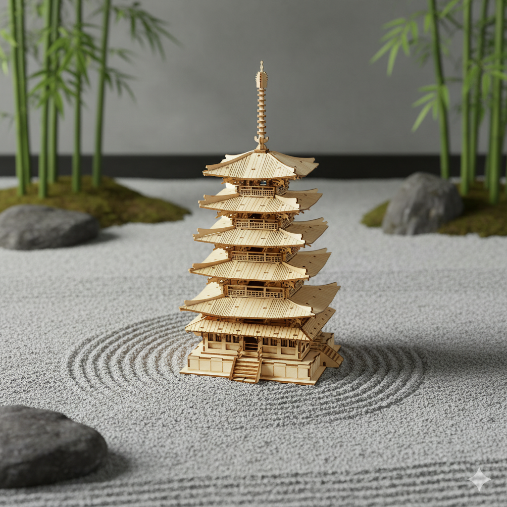 Lenyűgözi Japán ősi és elegáns építészete? Szeretné átélni Japán legrégebbi tornyának saját miniatűr változatának megépítésének örömét? Ha igen, akkor tetszeni fog az Ötszintes Pagoda !