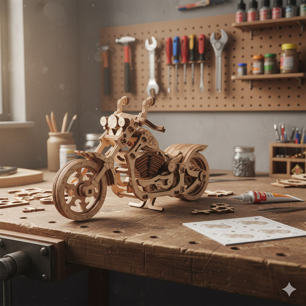 Fedezd fel egy klasszikus motorkerékpár varázsát egyedi fa formában! Az Eco Wood Art Cruiser Motorcycle több mint egy kirakós játék – ez egy mechanikus modell, amely életre kel a kezed alatt. Ez a stílusos fa szerkezet ideális motorkerékpár-rajongók, modellezők és gyűjtők számára.